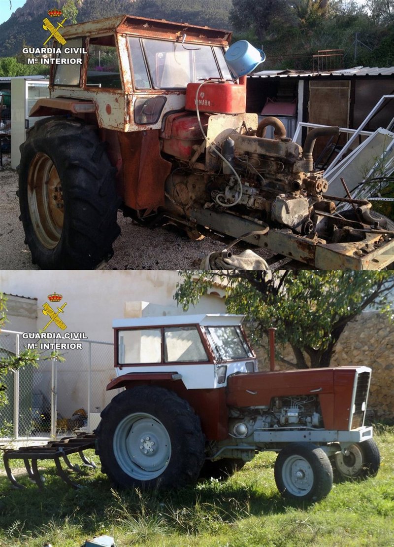 A principios del pasado mes de noviembre, guardias civiles de los equipos ROCA iniciaron una investigación tras una denuncia interpuesta por la supuesta víctima en la que manifestaba que le habían sustraído un tractor y varios aperos de éste, en una finca de Cieza.