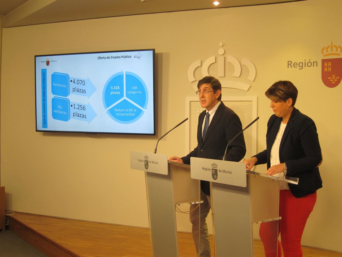 El Consejo de Gobierno ha dado luz verde al acuerdo del Servicio Murciano de Salud (SMS) sobre las bases generales que tutelarán el proceso de convocatoria de plazas de la oferta pública de empleo de 2017 y 2018 y el Plan de Estabilización de Empleo Temporal (PEET), lo que suma 5.326 plazas, una vez que ha sido negociado en Mesa Sectorial de Sanidad y aprobada por el Consejo de Administración del SMS.