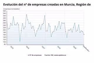 La Región de Murcia contabilizó en septiembre la creación de 163 nuevas sociedades mercantiles, para las que se suscribieron 3,6 millones de euros, frente a las 16 sociedades que se disolvieron.