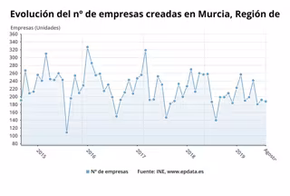 La Región de Murcia contabilizó en agosto la creación de 188 nuevas sociedades mercantiles, para las que se suscribieron 13,6 millones de euros, frente a las 16 sociedades que se disolvieron.