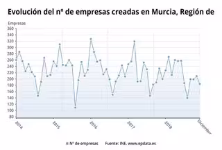 La Región de Murcia contabilizó durante el pasado año la creación de 2.603 nuevas sociedades mercantiles, para las que se suscribieron 99,6 millones de euros, frente a las 337 sociedades que se disolvieron.