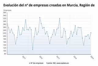 La Región de Murcia contabilizó en enero la creación de 223 nuevas sociedades mercantiles, para las que se suscribieron 6,6 millones de euros, frente a las 45 sociedades que se disolvieron.