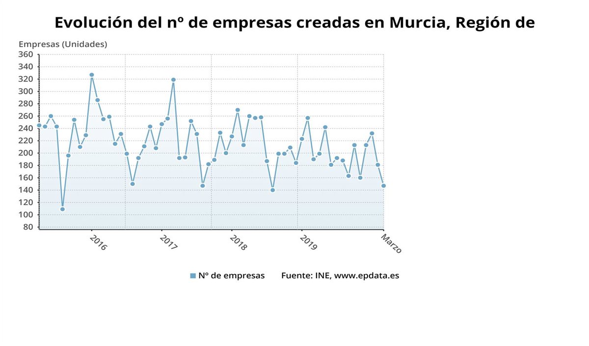 La Región de Murcia contabilizó en marzo la creación de 147 nuevas sociedades mercantiles, para las que se suscribieron 2 millones de euros, frente a las 11 sociedades que se disolvieron.