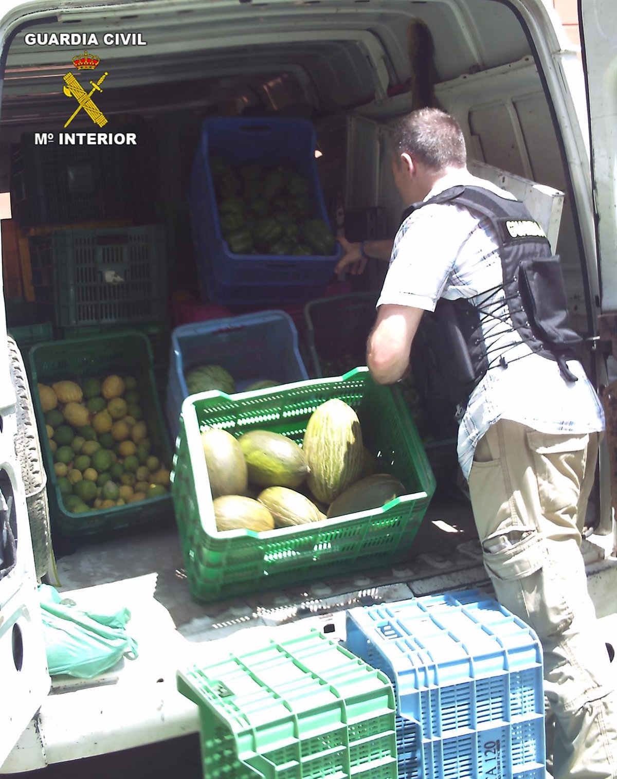 La Guardia Civil de la Región de Murcia ha sorprendido 'in fraganti' a un individuo, de 37 años y nacionalidad española, cuando transportaba en un vehículo productos hortofrutícolas perecederos supuestamente sustraídos instantes antes. En total, los agentes se incautaron de 230 kilogramos de melones, naranjas y pimientos.