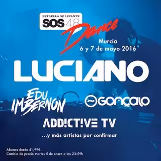 Los primeros confirmados en SOS DANCE son el DJ, productor y capo del sello Cadenza, Luciano; el portugués afincado en Madrid, Gonçalo; el coautor de uno de los mejores temas de la última década El Baile Alemán, Edu Imbernón, y la pareja de genios del mash up, Addictive Tv, según ha avanzado el festival.