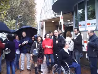 Para protestar ante esta situación, una veintena de miembros del sindicato se reunieron a las puertas de la Consejería de Política Social, Mujer e Inmigración, donde instalaron una mesa informativa en la que ofrecieron desayuno y folletos informativos sobre la "preocupante" situación a los viandantes y clientes del Mercado de la Avenida de la Fama, al tiempo que gritaron eslóganes como 'No a los recortes en gasto social' o 'Ni un puto duro para la Fórmula 1' equipados con banderas y carteles.