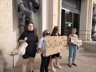Manifestantes a las puertas del Palacio de Justicia, en Murcia, protestan por la condena a los empresarios por prostitución de menores - EUROPA PRESS