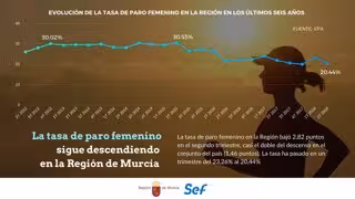 La tasa de paro femenino en la Región de Murcia bajó 2,82 puntos en el segundo trimestre del año, lo que representa casi el doble del descenso en el conjunto del país, que fue de 1,46 puntos.