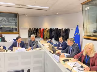 El consejero de Fomento e Infraestructuras, José Manuel Pancorbo, en el XIX Foro del Corredor Mediterráneo celebrado en la sede de la Comisión Europea en Bruselas. - CARM