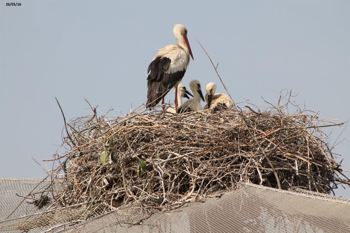 Terra Natura Murcia ha confirmado el nacimiento de cinco cigüeñas blancas silvestres tras poder observar dos de los tres nidos de esta especie que se ubican en sus instalaciones. El parque, que se había consolidado como espacio de nidificación de este animal gracias a la presencia de tres parejas reproductoras, cumple con estos nacimientos un nuevo hito, puesto que este hecho no ocurría desde 2021.