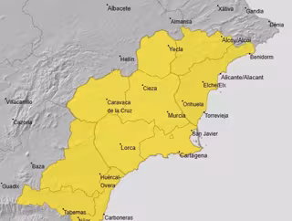 Toda la Región de Murcia permanece este jueves, de 12.00 a 20.00 horas, en aviso amarillo por lluvias y tormentas, según informa la Agencia Estatal de Meteorología (Aemet).