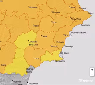 Este sábado está activado el aviso naranja, desde las 13.00 a las 14.00 horas, ya que en el Altiplano se alcanzarán los 41º, en la Vega del Segura los 43º y en el Valle del Guadalentín, Lorca y Águilas los 40º. Asimismo, en el Noroeste y Campo de Cartagena y Mazarrón tendrán aviso amarillo, ya que se espera que los termómetros lleguen a los 39º en Caravaca de la Cruz.