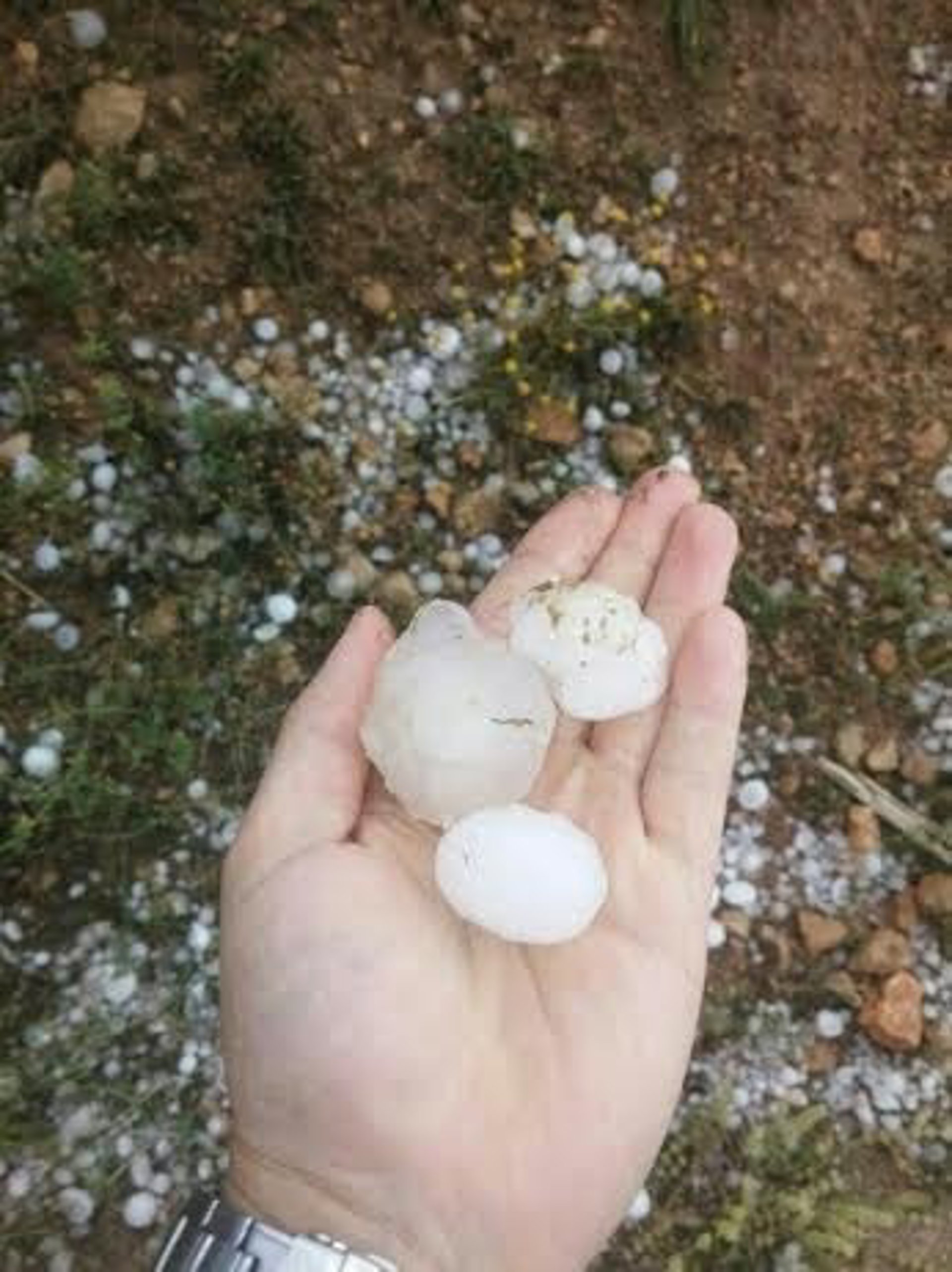Una tormenta de granizo ha arrasado "todo lo que se ponía en su paso" y en Caravaca de la Cruz, desde Campo de San Juan a Archivel, pasando por Mojante y El Moralejo, hasta el límite con la provincia de Almería, las hectáreas afectadas oscilan entre las 6.000 y las 7.000, con daños totales en las producciones de almendros, nogales y cereal.