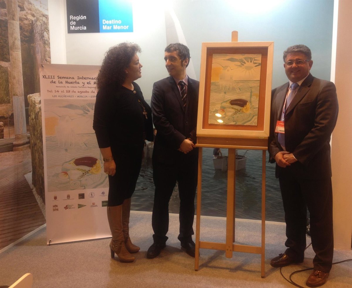 En la jornada de este jueves, dedicada a la promoción de los ayuntamientos, el consejero de Cultura y Turismo, Pedro Alberto Cruz, ha presentado el cartel anunciador de la XLIII Semana Internacional de la Huerta y el Mar de los Alcázares, realizado por el pintor murciano Paco Bernal con acuarelas y lápiz, con motivos que incluyen los recuerdos del pintor de Los Alcázares cuando era niño, y con elementos de la huerta murciana.