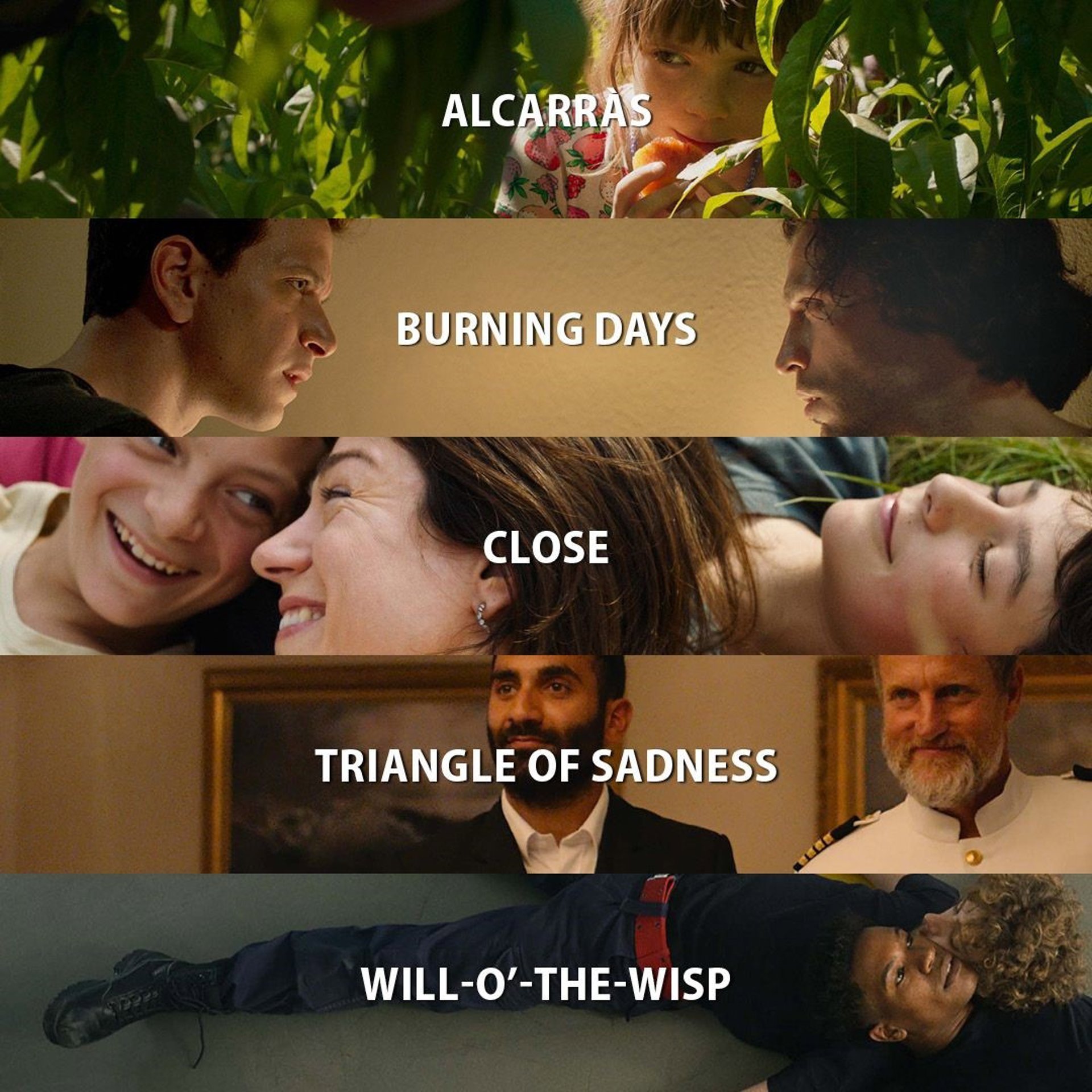 Los largometrajes que se exhibirán de manera gratuita un total de 66 veces en 16 ciudades españolas son 'Alcarrs', de la directora española Carla Simón, 'Burning Days', del director turco Emin Alper, 'Close', del belga Lukas Dhont, 'El triángulo de la tristeza', dirigida por el director sueco Ruben stlund, y 'Fuego Fatuo' del portugués Joo Pedro Rodrigues.