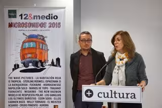 La directora general del Instituto de las Industrias Culturales y de las Artes, Marta López-Briones, y el programador y responsable de Silbato Producciones, Rafael Gómez-Vizcaíno, han presentado la octava edición del festival de música 'Microsonidos' que se celebrará en Murcia del 16 de enero al 28 de marzo y que cuenta con el patrocinio de Estrella de Levante y la Consejería de Educación, Cultura y Universidades.
