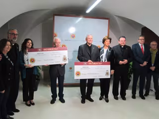 Así lo han hecho saber el Obispo de la Diócesis de Cartagena, José Manuel Lorca Planes, la Hermana Mayor de la Cofradía de la Vera Cruz de Caravaca, Elisa Giménez-Girón, y el presidente del Patronato Fundación Solidaridad y Reinserción, Tomás Zamora Ros, en una rueda de prensa en la que han valorado el tercer Año Jubilar de la Vera Cruz de Caravaca y han hecho entrega de los cheques con las colectas.