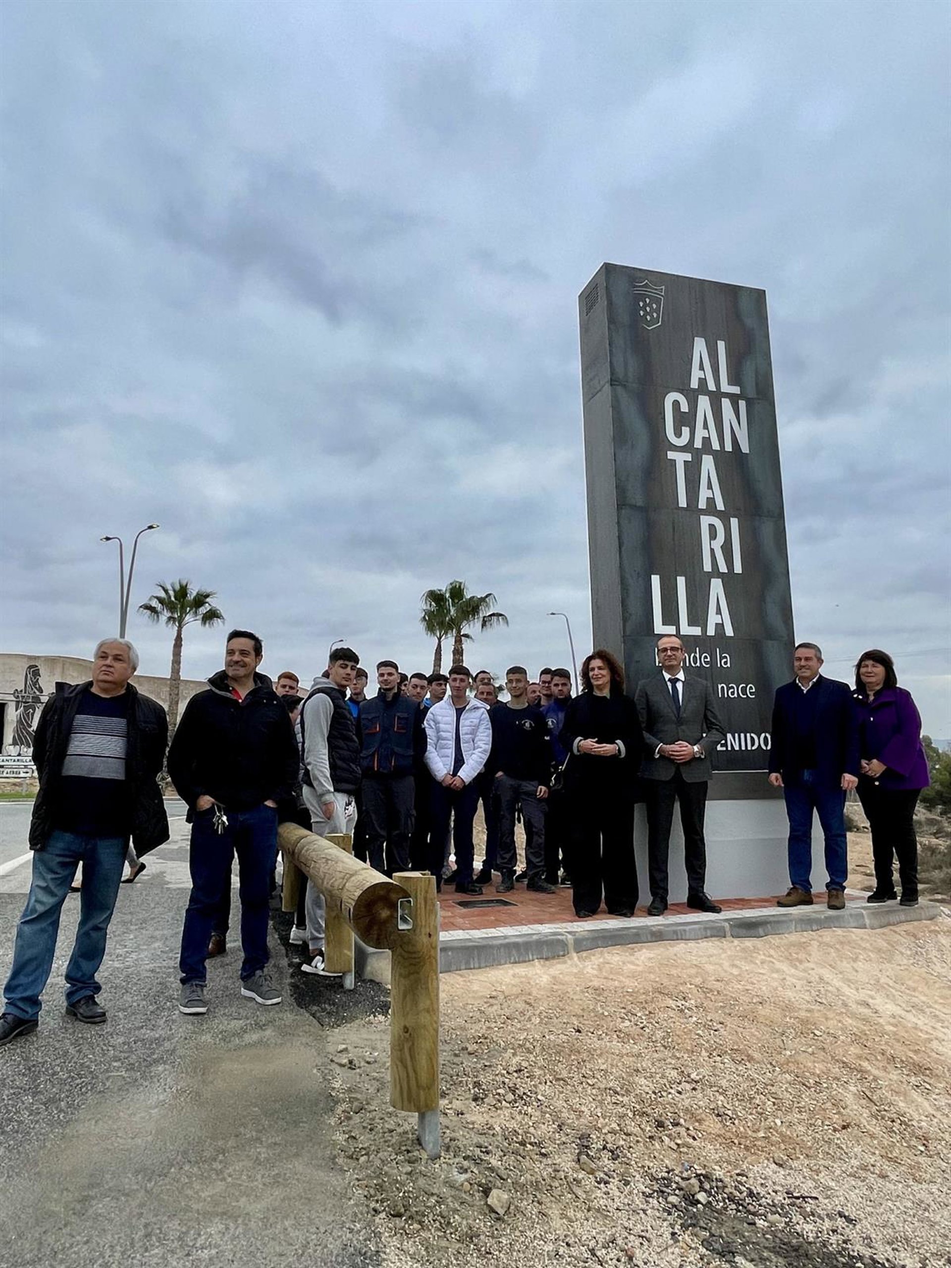 El consejero de Educación, Formación Profesional y Empleo, Víctor Marín, y el alcalde de Alcantarilla, Joaquín Buendía, han visitado este martes el lugar donde se ha instalado un tótem luminoso, con el eslogan 'Alcantarilla, donde la huerta nace', elaborado por estudiantes del Instituto de Educación Secundaria Sanje, que da la bienvenida al municipio desde la autovía del Noroeste.