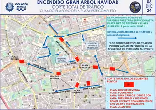 Cortes de tráfico previstos por la Policía Local de Murcia este viernes con motivo del encendido del gran árbol de Navidad - AYUNTAMIENTO DE MURCIA