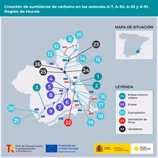 Mapa de creación de sumideros de carbono en las autovías A-7, A-30, A-33 y A-01 - MINISTERIO DE TRANSPORTES