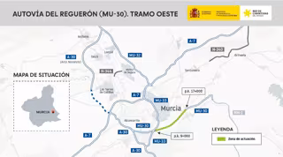 En concreto, se trata del tramo oeste de la autovía del Reguerón, que se ubicará entre los kilómetros 9 y 17 de la misma, y que viene a completar la circunvalación sur de Murcia (MU-30), dando continuidad al tramo este, localizado entre el enlace con las avenidas de Levante y Beniaján y la autovía RM-1, puesto en servicio en 2021.