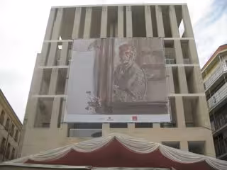 Murcia vuelve a rendirle homenaje a su pintor más importante. Trece edificios de la ciudad han colgado de sus fachadas lonas de grandes dimensiones con cuadros de Ramón Gaya.