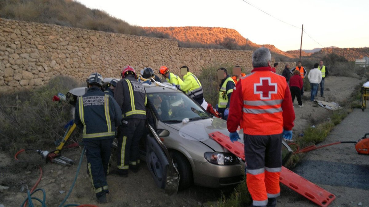 Las primeras informaciones recibidas en el '1-1-2' de la Comunidad de Murcia alertaban de una colisión entre dos turismos con varios heridos y atrapados en el interior de uno de los vehículos.