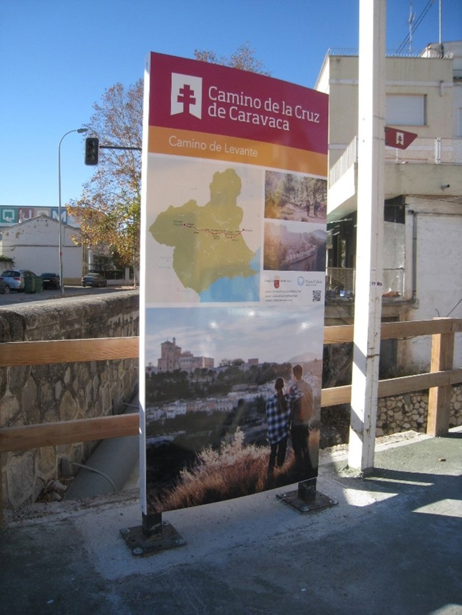 El primer Camino de la Cruz de Caravaca que se puso en valor fue el Camino de Levante, aprovechando grandes infraestructuras acondicionadas para tránsito no motorizado, como la mota del río Segura y la Vía Verde del Noroeste.