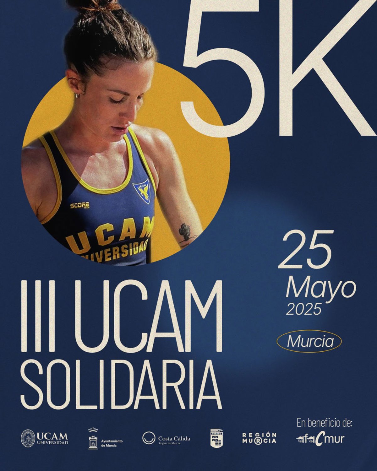 La Universidad Católica de Murcia celebrará el domingo 25 de mayo la tercera edición de la 'UCAM Solidaria', una carrera y marcha de cinco kilómetros con salida y meta frente al Ayuntamiento cuyo objetivo es recaudar fondos para apoyar la labor de la Asociación de Familiares de Niños con Cáncer de la Región de Murcia (AFACMUR).