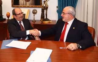 El acuerdo fue corroborado por José Luis Mendoza, presidente de la UCAM; y por Alfonso Rubio, Consejero Delegado de Esri España. Ambos se mostraron satisfechos ante la oportunidad de poner en marcha estos nuevos másteres, que darán la posibilidad a los alumnos de aprender los diferentes sistemas de información geográfica a través de ArcGIS, una plataforma informática que permite crear, analizar, almacenar y difundir datos, modelos, mapas y globos en 3D.