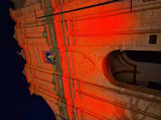 La fachada del Monasterio de Los Jerónimos iluminada de rojo - UCAM