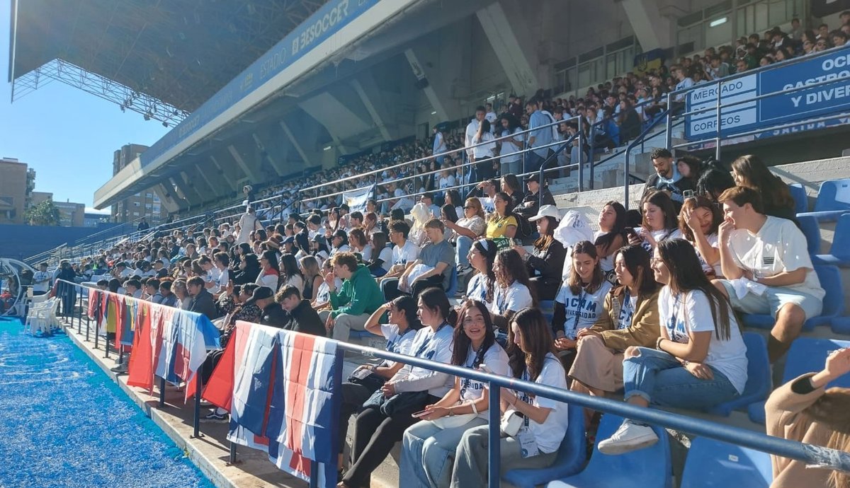 La Universidad Católica de Murcia ha celebrado este jueves un acto de bienvenida a sus alumnos internacionales en el Estadio de La Condomina al que han acudido 1.300 de nuevo ingreso de los casi 6.500 con los que cuentan de un total de 90 países.