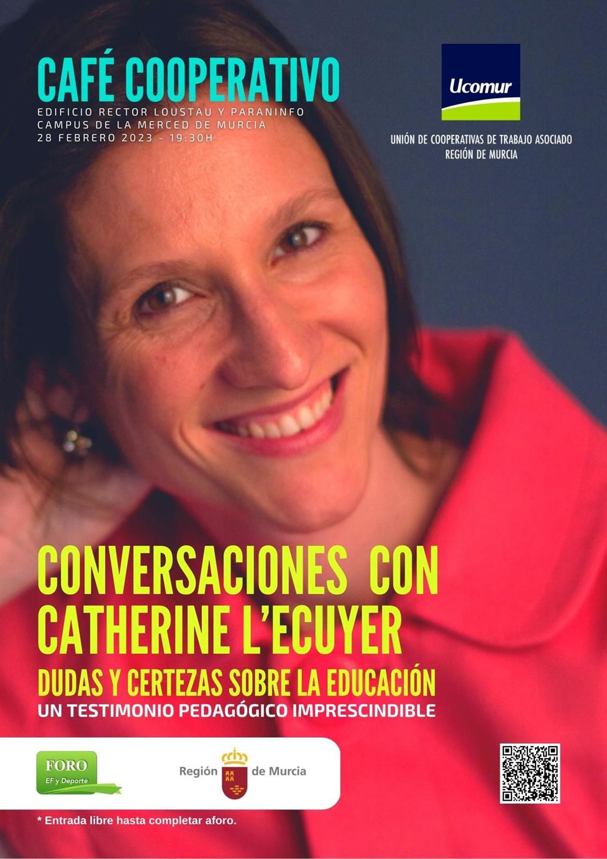 La Unión de Cooperativas de Trabajo Asociado de la Región de Murcia, Ucomur, arranca un nuevo ciclo de conferencias y charlas enmarcadas dentro de sus tradicionales cafés cooperativos. El primer encuentro del año estará protagonizado por la doctora en Educación y Psicología e investigadora, Catherine L'Ecuyer, bajo el nombre 'Conversaciones con Catherine L'Ecuyer. Dudas y certezas sobre la educación'.