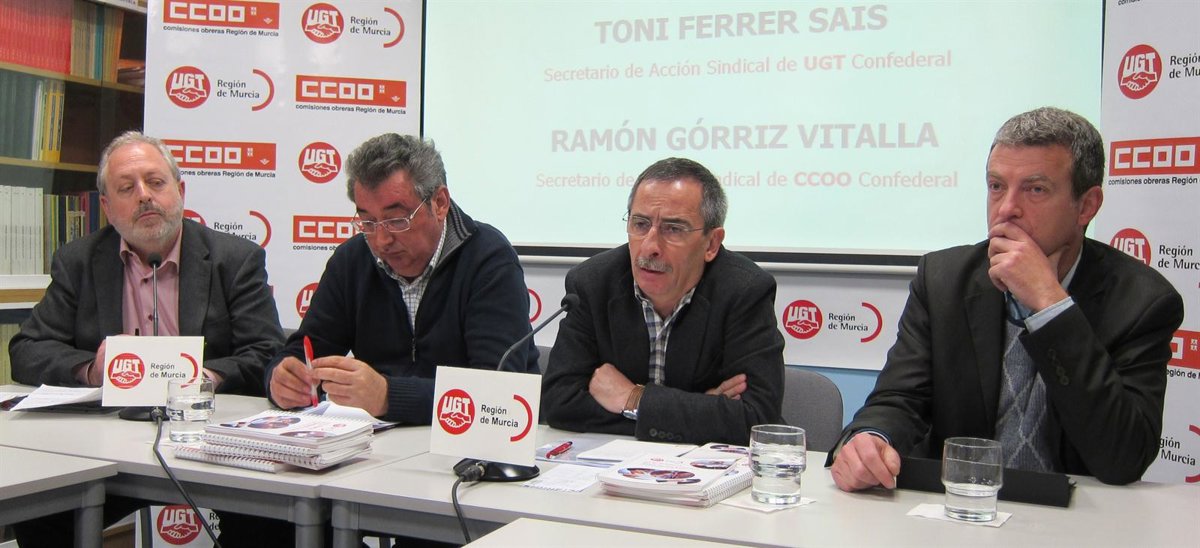 Los sindicatos UGT y CCOO han pedido este viernes el desbloqueo de los convenios colectivos y que la patronal CROEM contribuya a dar fluidez a su negociación, y es que, han explicado, la situación de crisis actual y las medidas llevadas a cabo por el Gobierno "han alcanzado a la negociación colectiva", con lo que el trabajo y los derechos laborales están "en una fase crítica de retroceso", pues "hemos vivido tres reformas laborales que se han ocupado de sentar las bases para rebajar derechos y salarios".