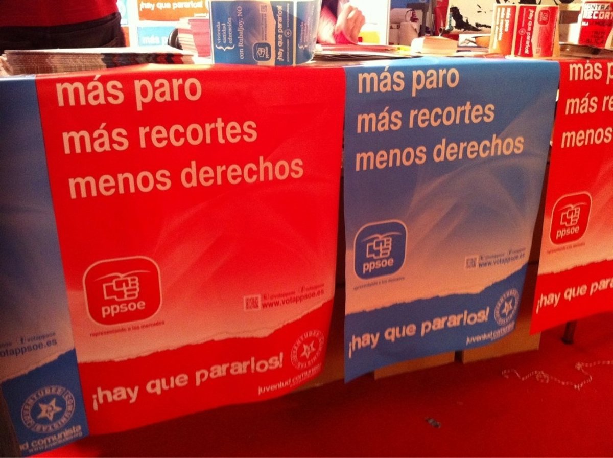 La UJCE considera que "ya sea con tinta roja o azul, el 'PPSOE' te ofrece lo mismo para salir de la crisis: acatar las reformas que 'los mercados' decidan".