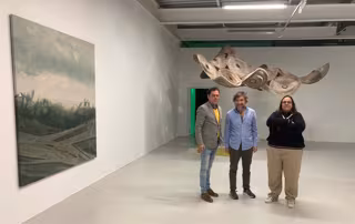 Imagen del director general del Instituto de las Industrias Culturales y las Artes, Manuel Cebrián, junto al artista Paco Caballero y la comisaria Isabel Durante en la exposición 'Hipnagogia. En la vigilia de los afectos'. - CARM