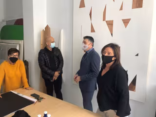 Imagen de la visita del director general del Instituto de las Industrias Culturales y las Artes, Juan Antonio Lorca, y el catedrático y comisario Juan Bautista Peiró a una de las galerías que participan en RUT-ARTE - GOBIERNO REGIONAL