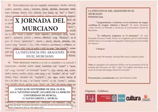 A continuación, el doctor en Lingüística por la Universidad del País Vasco y licenciado en Geografía e Historia por la Universidad de Valencia, José Fernando Domene Verdú, ofrecerá una ponencia sobre 'La influencia aragonesa en el murciano'.