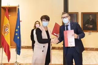 Catalina Martínez, presidenta de Amiga, y el rector de la UMU, José Luján, han sido los encargados de firmar el convenio en un acto celebrado en Convalecencia - UMU
