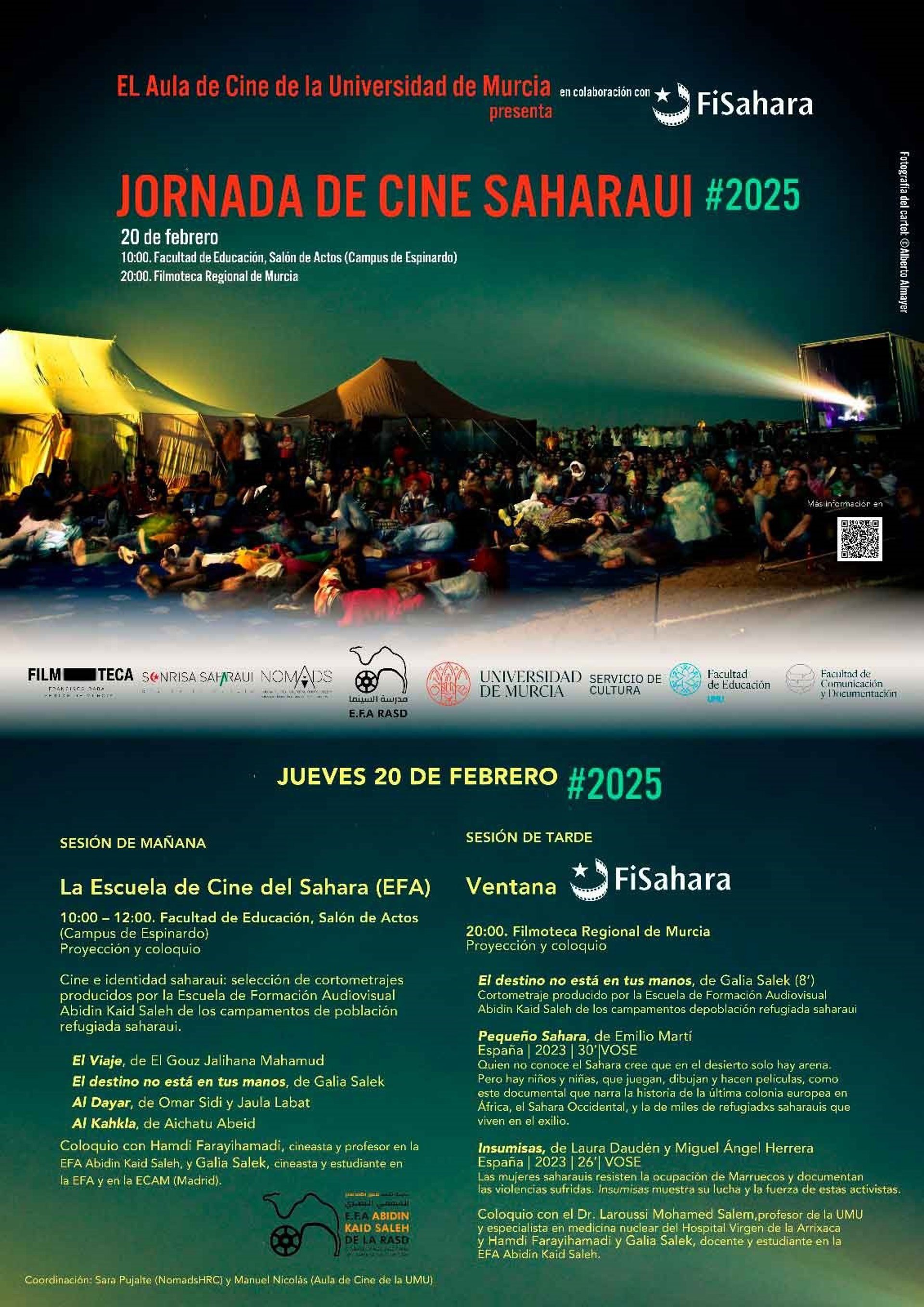 La Universidad de Murcia (UMU) y la Filmoteca Regional 'Francisco Rabal' acogen este jueves, 20 de febrero, una jornada de cine saharaui en colaboración con el Festival Internacional de Cine del Sáhara (FiSahara).