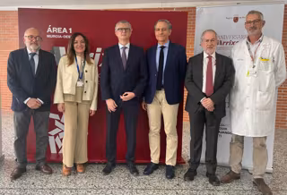 El consejero de Salud, Juan José Pedreño, (c); el director general de Salud Pública, José Jesús Guillén (1i); la directora de la FFIS, Fuensanta Martínez; los doctores Pedro Albajar (3d) y Manuel Segovia (2d) y el director médico del hospital Carlos Pérez - CARM