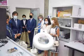 La rectora de la UPCT, Beatriz Miguel, y el consejero de Empleo, Investigación y Universidades, Miguel Motas, han visitado este mediodía uno de los laboratorios de la UPCT en los que se desarrolla la investigación.