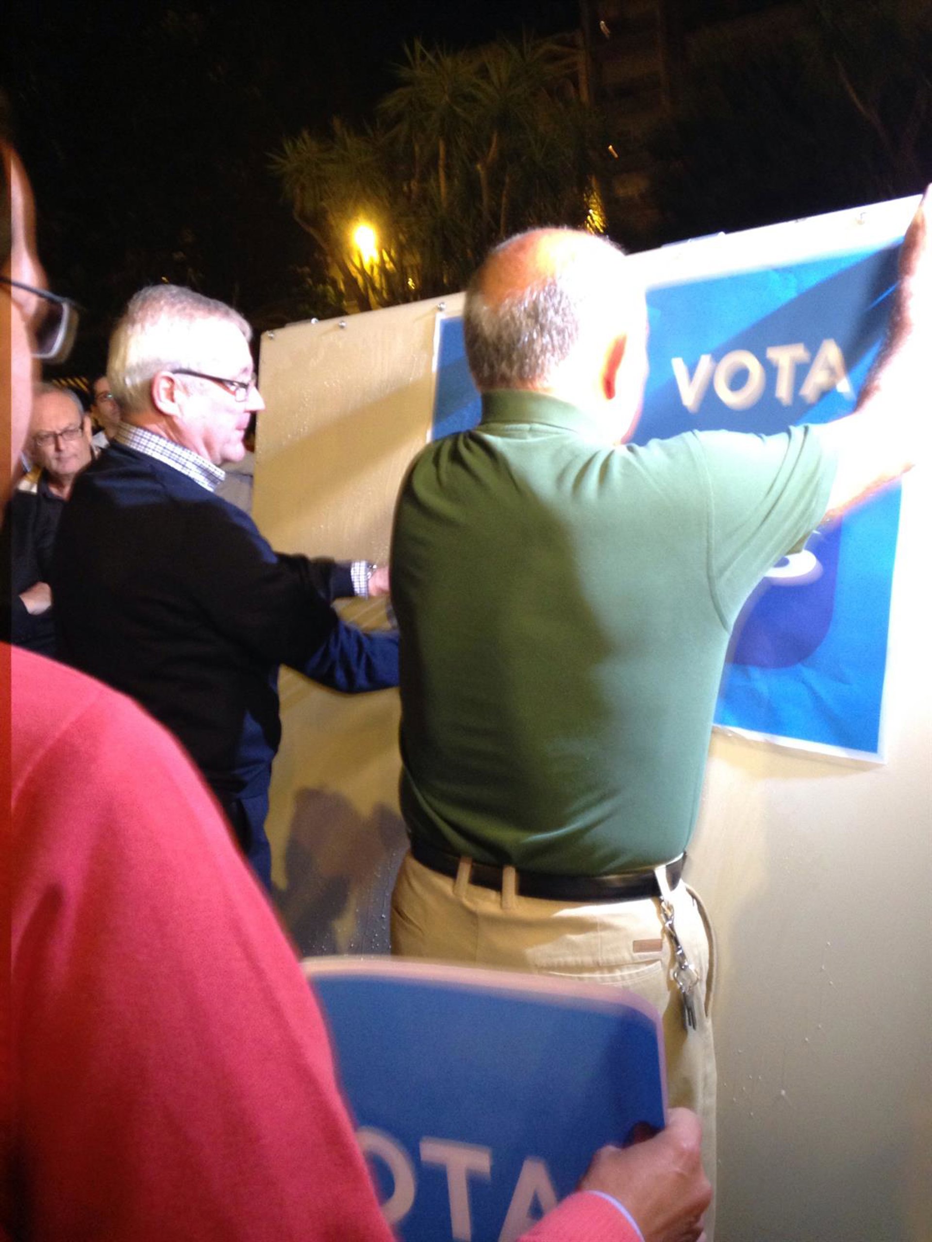 Valcárcel ha estado acompañado por el presidente de la Región de Murcia, Alberto Garre; y el alcalde de Murcia y secretario general del PP, Miguel Ángel Cámara, en la plaza de Santo Domingo de Murcia, junto a afiliados del partido.