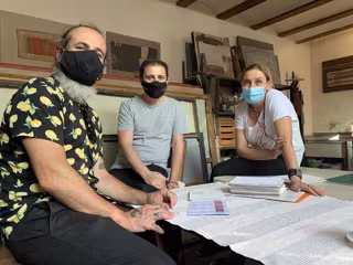 Vilar-Bou (el autor) en el centro, Felicia Puerta (la artista) a la derecha y Ximo Rochera (el editor) a la izquierda - EDITORIAL CANIBAAL