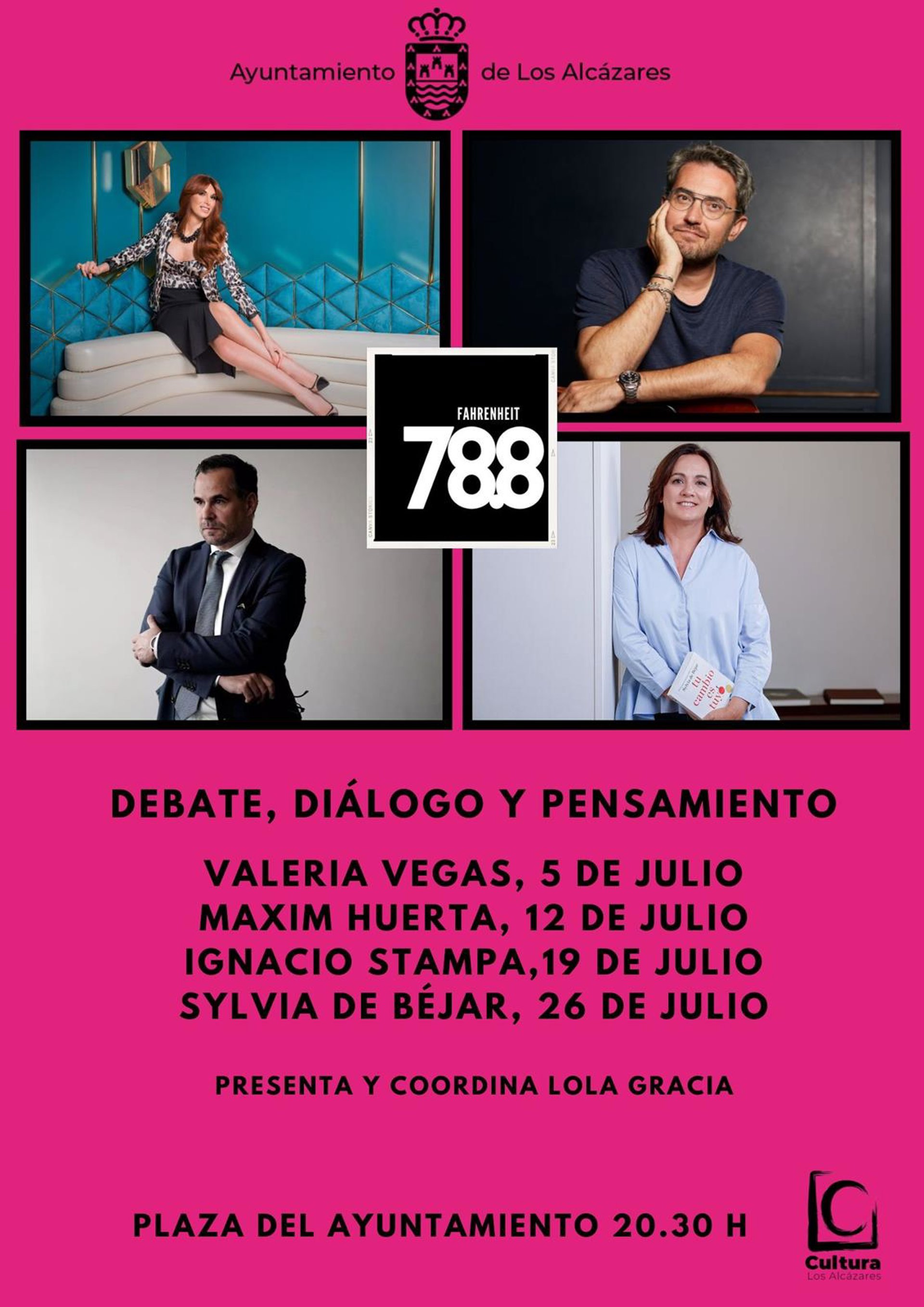 "Todos los viernes del mes de julio, tendremos una cita con el pensamiento, el debate y los temas de rabiosa actualidad con invitados notorios como lo son la periodista, guionista y escritora Valeria Vegas; el periodista y escritor Maxim Huerta; el juez Ignacio Stampa; y la experta en sexualidad femenina Sylvia de Béjar", comentó la coordinadora del evento, escritora, gestora cultural y coordinadora del evento, Lola Gracia.