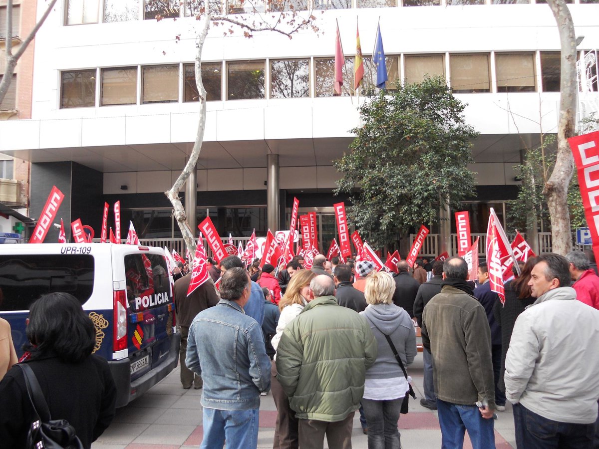 Varios centenares de personas, cerca de 400 según los manifestantes, se han concentrado a las puertas del Instituto Nacional de la Seguridad Social (INSS) de Murcia para protestar contra la Reforma de las Pensiones, sobre todo en lo referente a la ampliación de la edad de jubilación o la ampliación del cómputo de cotización.