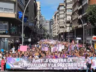 Varios miles de mujeres se han echado hoy a la calle en Murcia para protestar contra la desigualdad y la precariedad en la primera de las dos manifestaciones que hay en este '8M' en la ciudad, la convocada por Asamblea Feminista Región de Murcia que ha sido secundada por cientos de colectivos, asociaciones, partidos políticos y Gobierno regional.