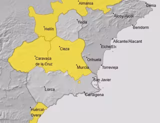 En concreto, en sendas comarcas de la Región de Murcia se prevén temperaturas máximas de hasta 38 grados entre las 13.00 y las 21.00 horas.