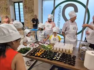 Los pinches de cocina, en esta ocasión, fueron sus propios nietos y nietas, quienes ayudaron en la preparación del menú con el cocinado de productos autóctonos.