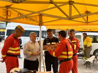 El delegado del Gobierno en la Región de Murcia, José Vélez, en el puesto de mando habilitado para coordinar el dispositivo de extinción del incendio declarado en Jumilla (Murcia) - DELEGACIÓN DEL GOBIERNO EN LA REGIÓN DE MURCIA